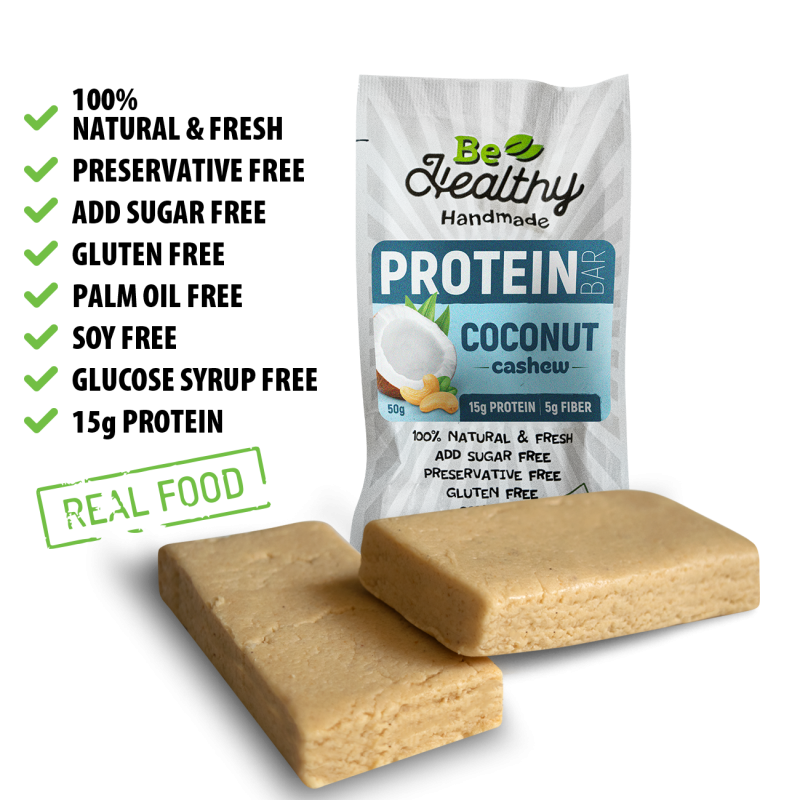 The simplicity of the creation in this case is brought to perfection. Composed of 60% butter from cashews, whey, honey and coconut, this protein bar makes it simply irresistible in taste and texture.